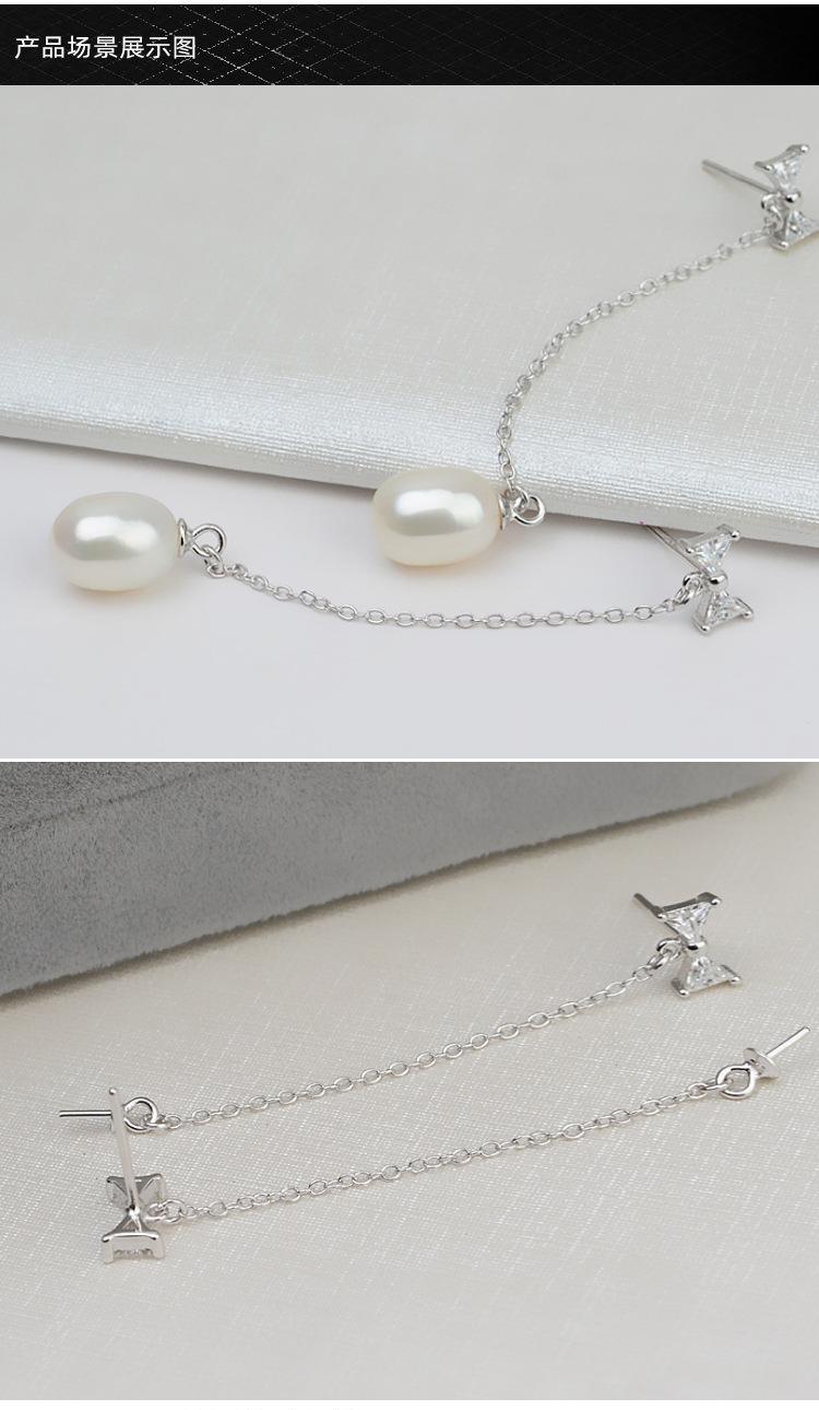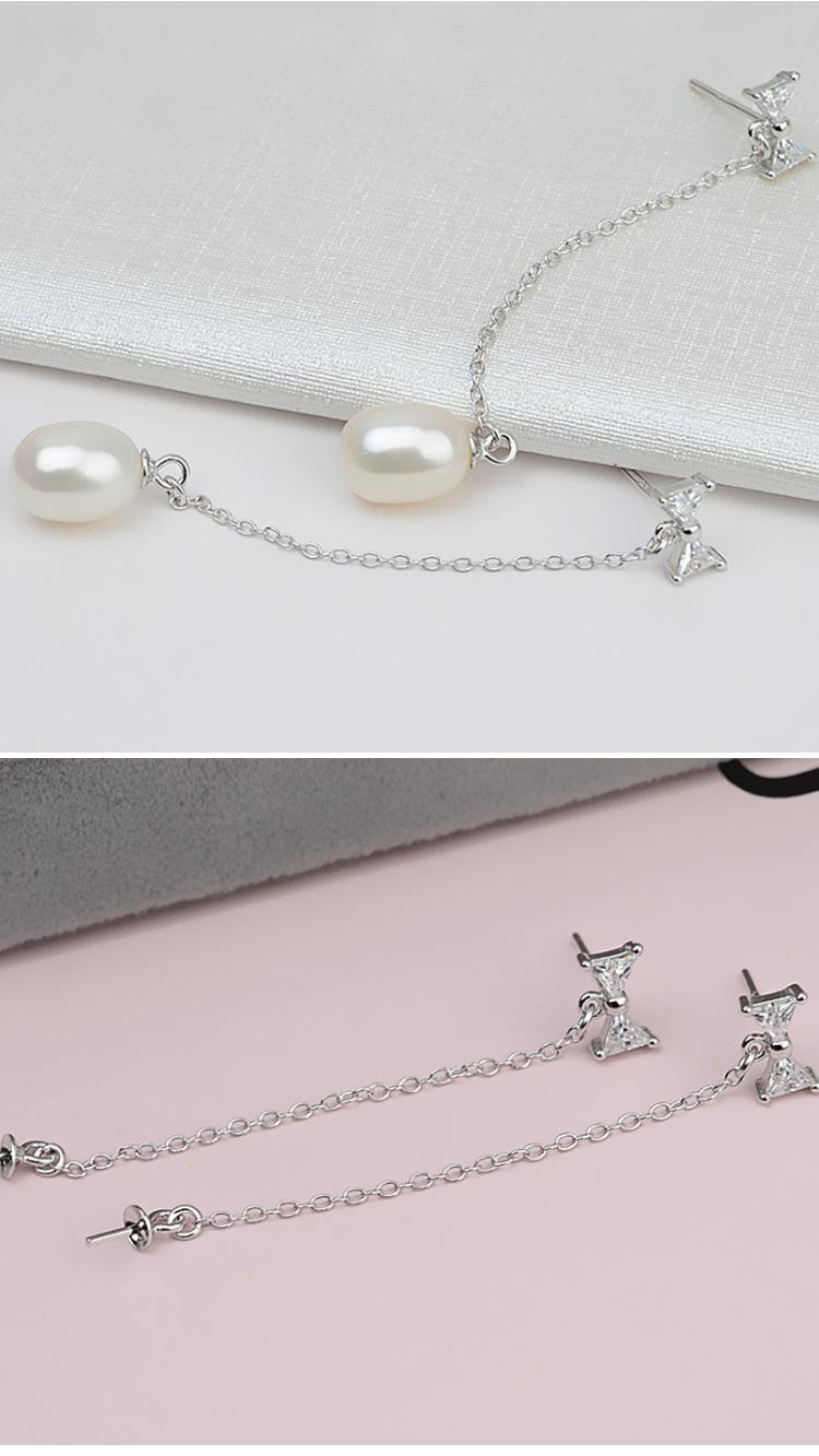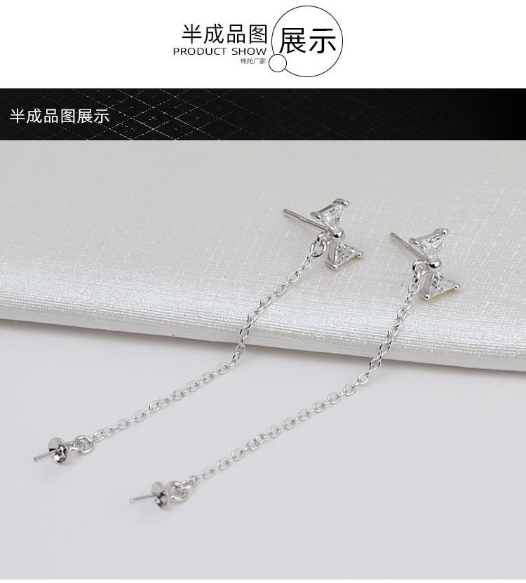 Brincos de arco de prata S925 brincos longos de borla brincos de pino de orelha feminino brincos de pérola personalidade suporte vazio acessórios faça você mesmo 887