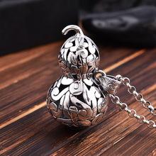 | Colgante de plata de ley S925 con forma de calabaza hueca y nube auspiciosa, cadena de suéter versátil y desgastada de plata de ley 99 para mujer. |