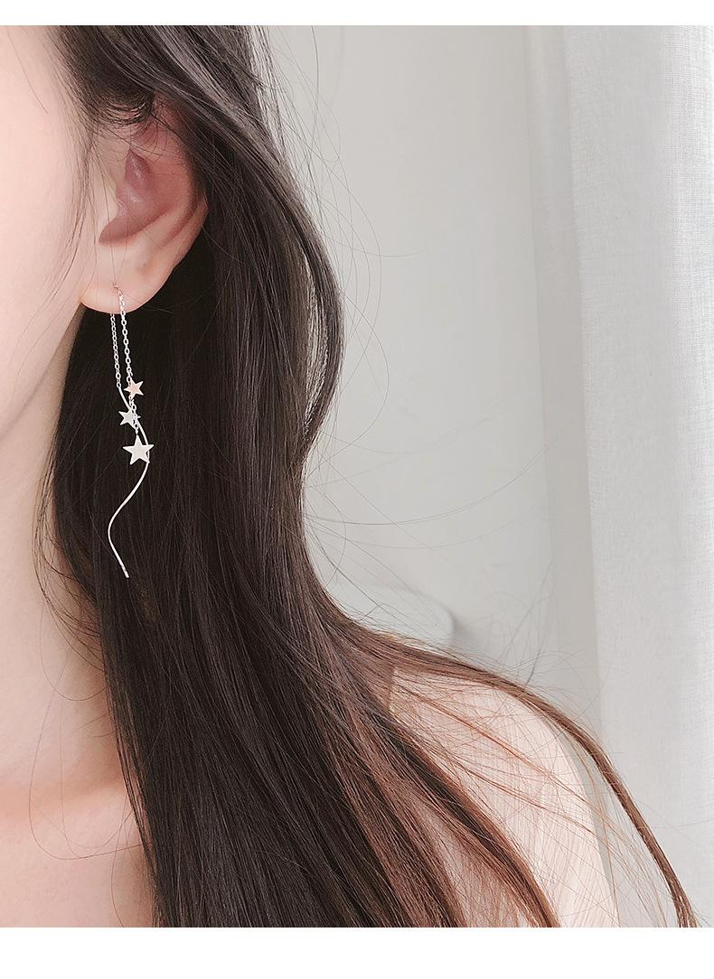 Compre Brincos Pendurados Fangxing Estrela Ondulados Prata de Lei S925 Elegantes Super Fada Emagrecimento Facial Brincos Longos Brincos de Corrente no atacado no Joom.pro