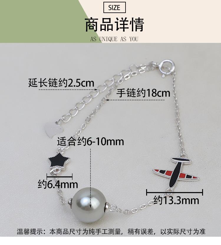 O comprimento total da pulseira é de cerca de 18 cm, a corrente de extensão é de cerca de 2,5 cm, a largura do plano é de cerca de 13,3 mm e a largura da estrela de cinco pontas é de cerca de 6,4 mm. É adequado para contas redondas de 6-10 mm ou contas de arroz, maiores ou menores também podem ser usadas.