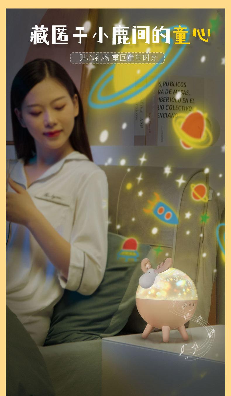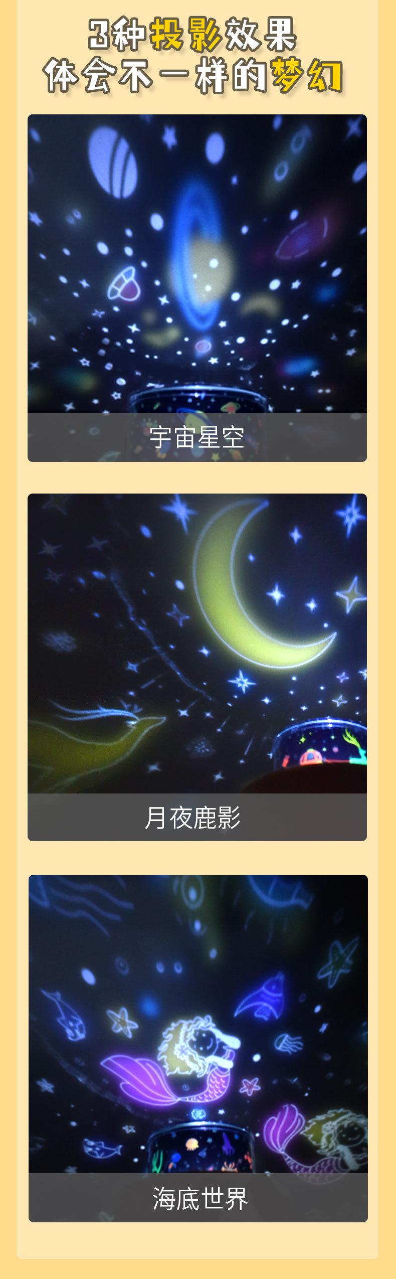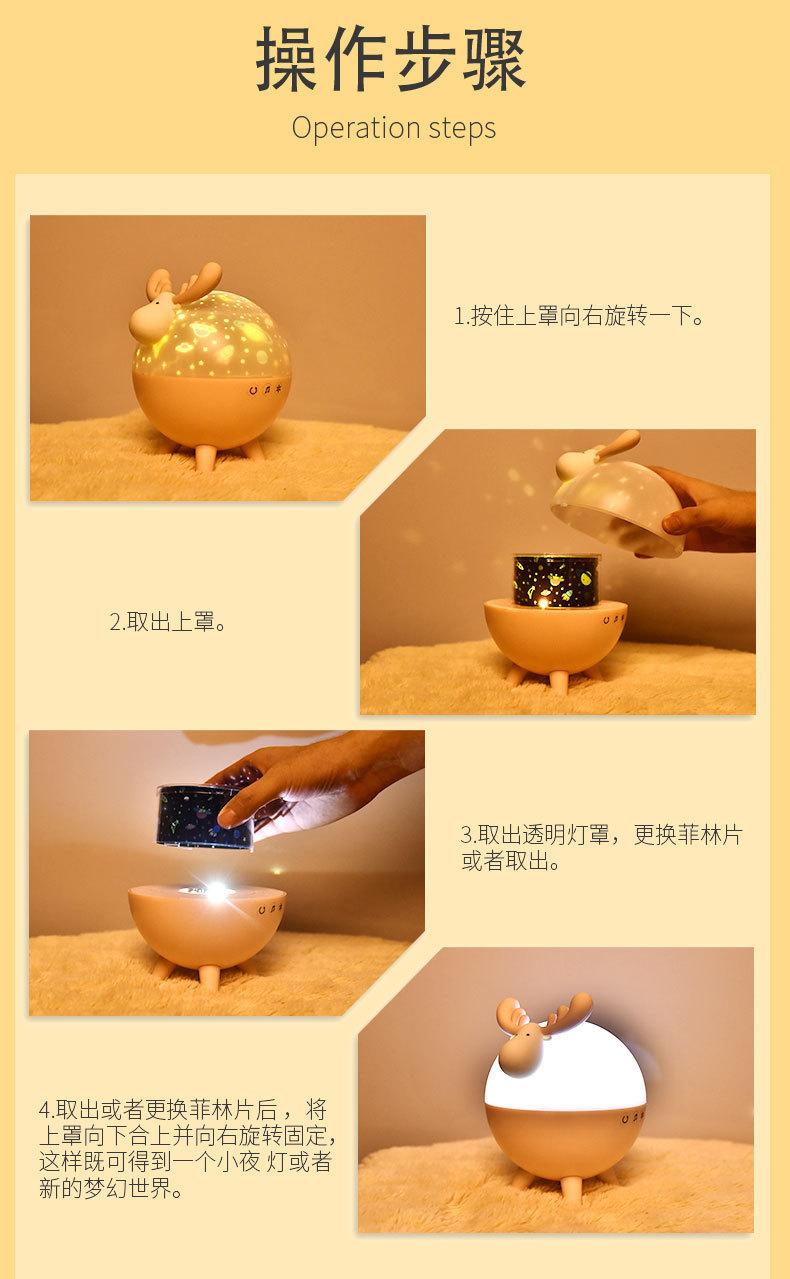 3. Este produto tem uma aparência simples e é adequado para companheiros de sono de crianças, projeção de quarto e iluminação ambiente.