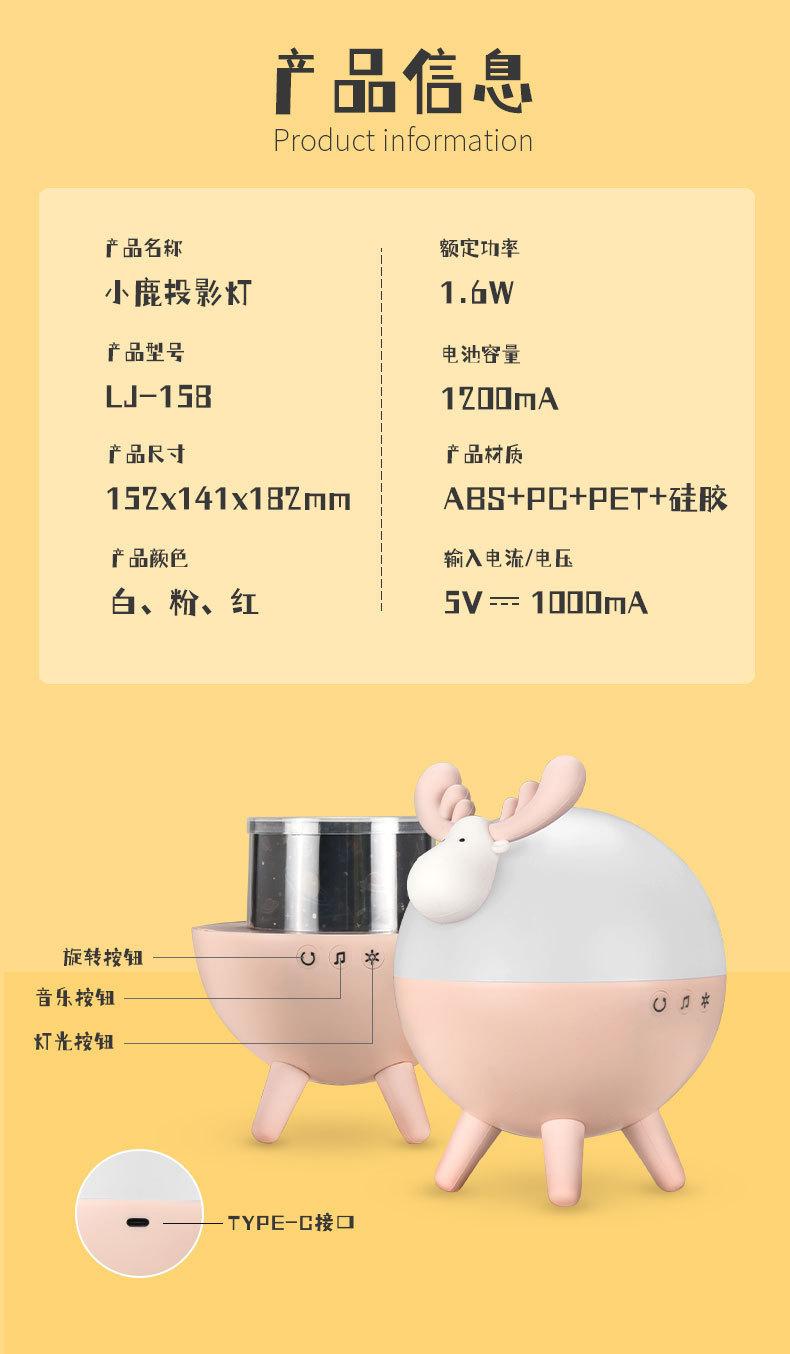 Tempo de uso da lâmpada de projeção de veado: Luz mais brilhante: 3 (potência: música + rotação + luz) Brilho: 24h (modo música)