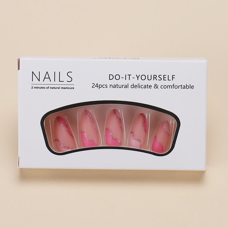 Compre Transfronteiriço Quente-venda Desgaste Armadura Listra Francesa Cor Contraste Glitter Manicure Terminou 24 Remendo de Unhas Falso Removível no atacado no Joom.pro