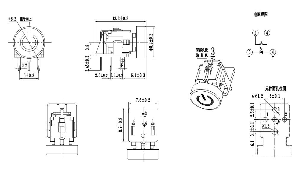 ●A placa de circuito impresso deve sert=1,6 mmUm substrato de um só lado é usado como padrão.