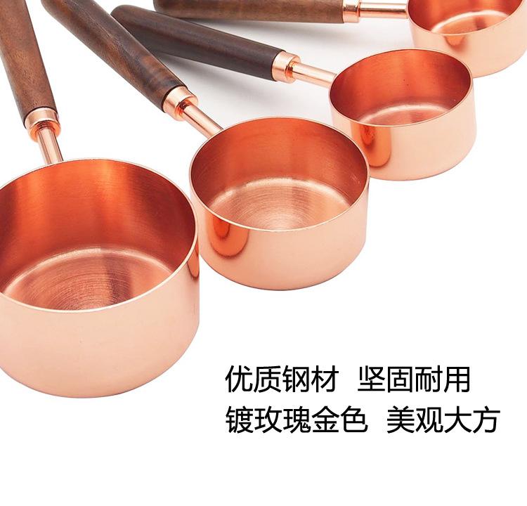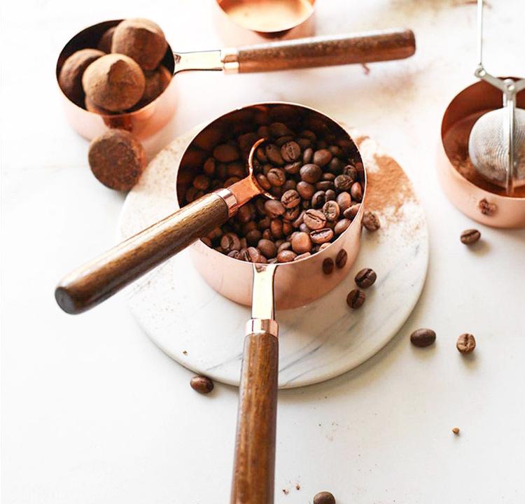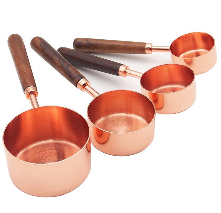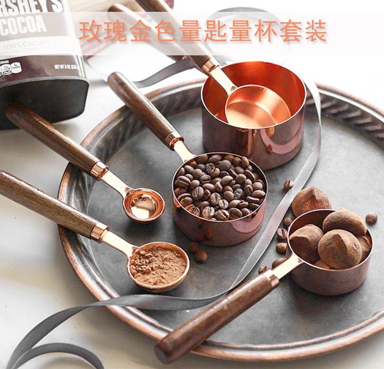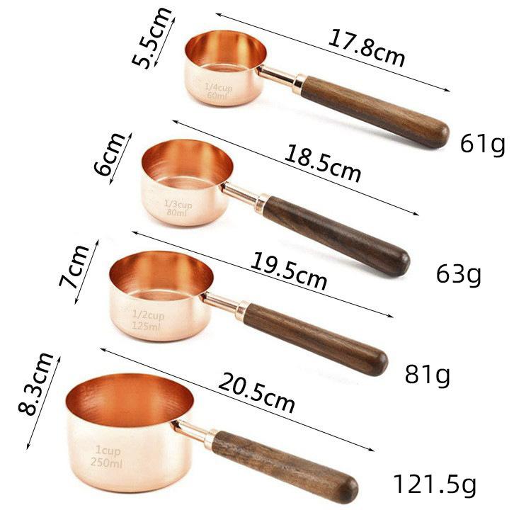 Nome do produto: Conjunto de 8 peças de xícaras e colheres medidoras banhadas a ouro com cabo de madeira