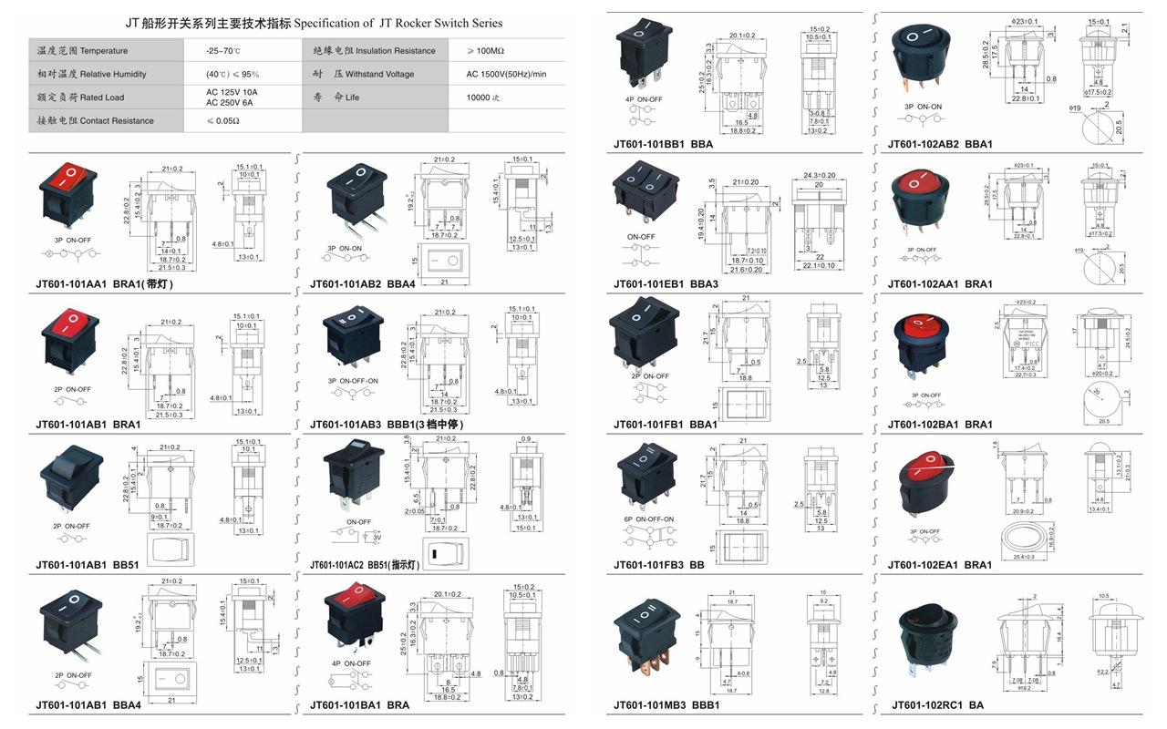 Interruptor à prova d'água Jingteng KCD3 para barco com luz, duas velocidades, dois polos, 12V/220V 15A, à prova de poeira, interruptor elétrico para panela quente