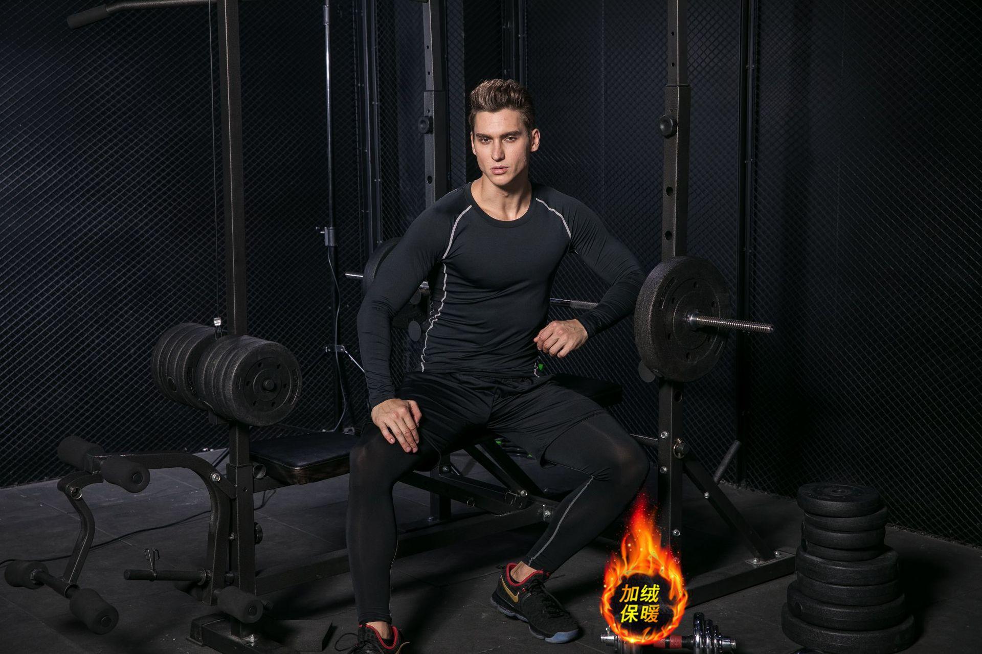 Terno fitness masculino de lã manga longa |