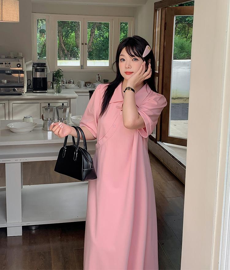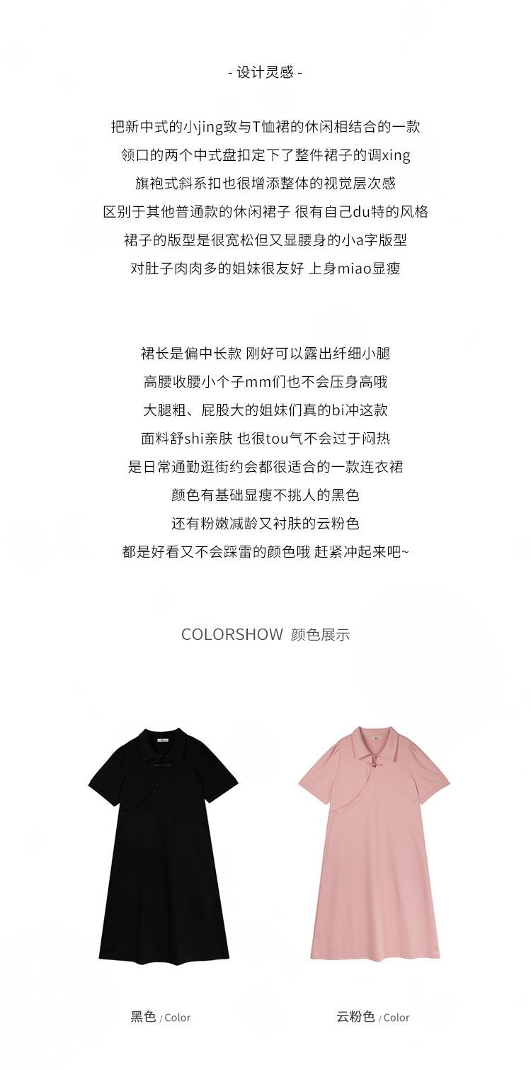 Um estilo que combina a elegância do novo estilo chinês com a casualidade de um vestido camiseta.