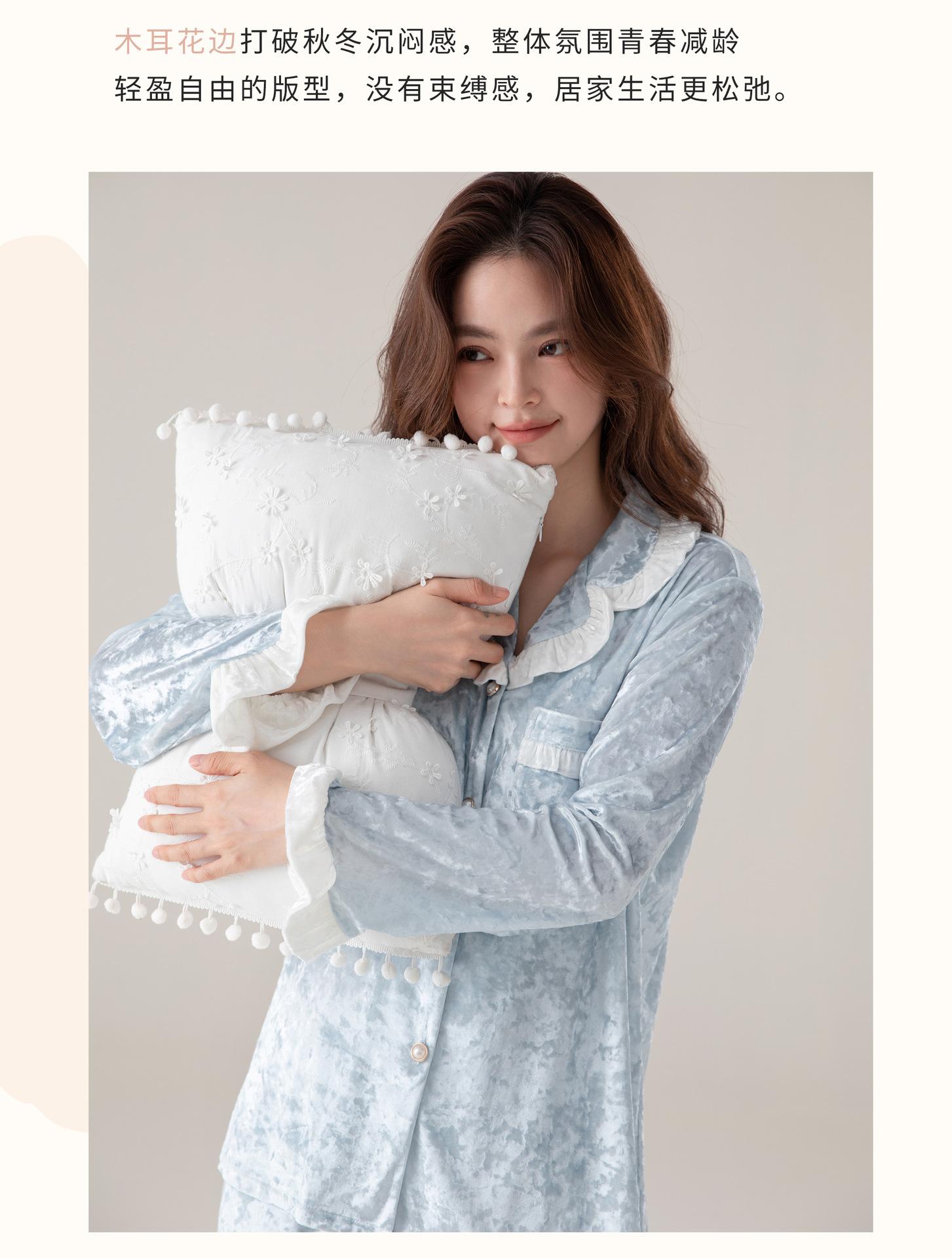 Compre Pijama de Veludo Diamante Dourado Personalizada 2025, Conjunto de Duas Peças de Calças de Manga Comprida Feminino de Outono, Conjunto Confortável de Roupas de Casa com Renda no atacado no Joom.pro