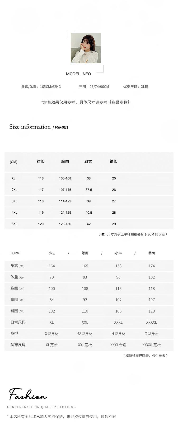 5XL Comprimento da saia 120 Busto 128-136 Largura do ombro 42 Comprimento da manga 29
