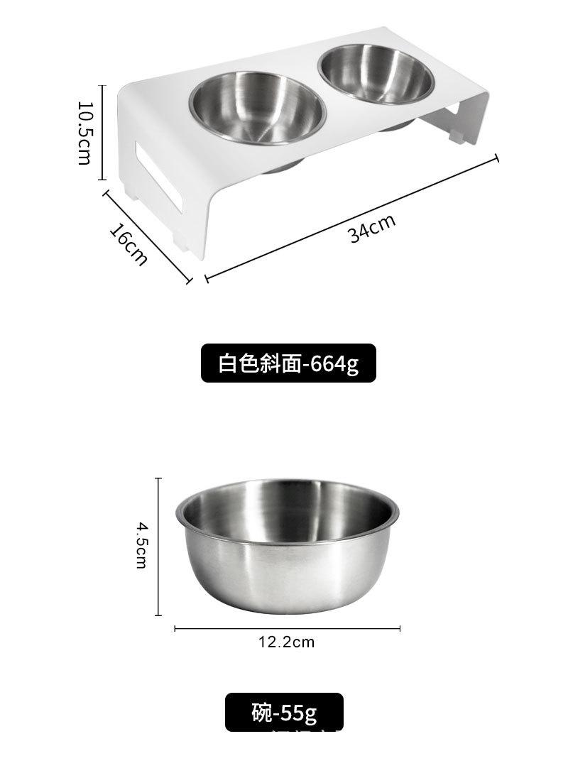 Prato para animais de estimação de ferro chanfrado branco de duas posições: 34*16*10,5 cm, tigela: Ø12,2*4,5 cm