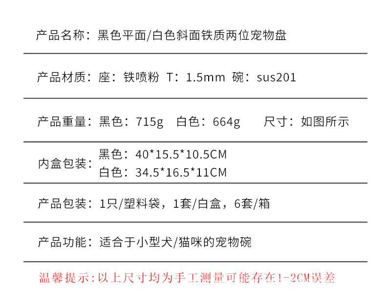 Nome do Produto:Bandeja de ferro para animais de estimação com dois lugares