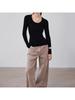 Compre Worsted 16 Agulhas 48 Contagens 100. Tricô de Lã Merino com Decote U para Mulheres no Outono Look Slim Camiseta para Camada Interna no atacado no Joom.pro
