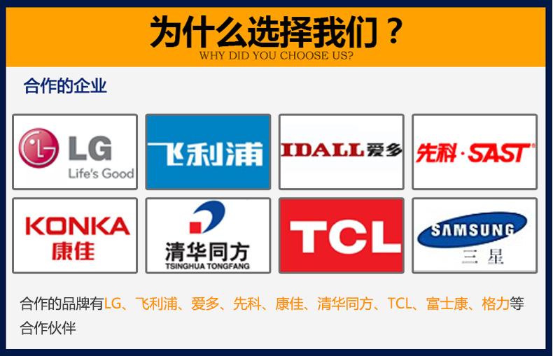 As marcas cooperantes incluem LG, Philips, Aido, Senko, Konka, Tsinghua Tongfang, TCL, etc.