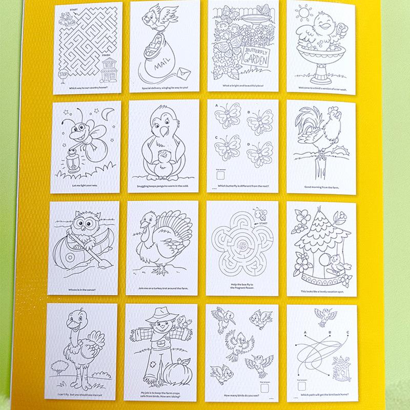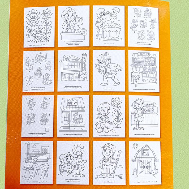 [Descrição do produto]: 8 folhas de papel para colorir (ambos os lados têm 16 páginas para colorir) (podem ser usadas como referência para colorir ou podem ser colocadas onde você quiser)