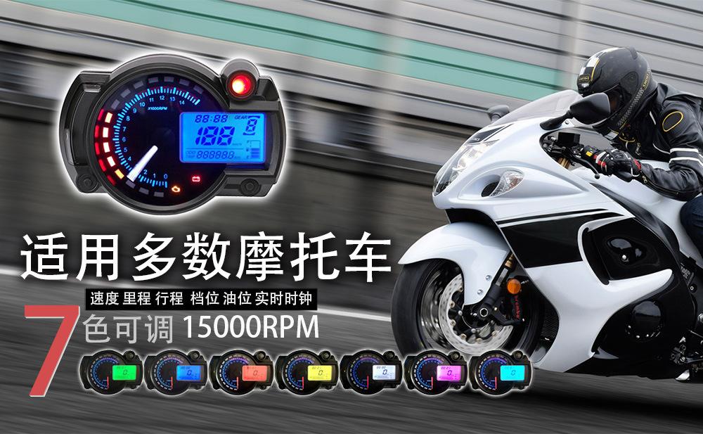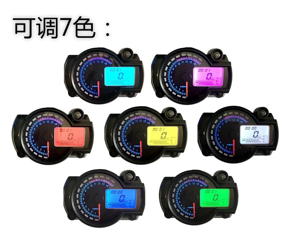 Motocicleta universal LCD instrumento odômetro tacômetro CY1778 instrumento de quilometragem dupla tela de sete cores