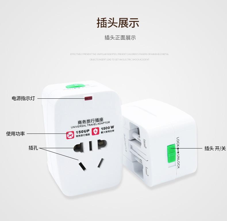 4. Peça de soquete: Padrão nacional de cinco furos, não é um modelo universal, os plugues não são aplicáveis a alguns países como o Reino Unido e Hong Kong, observe