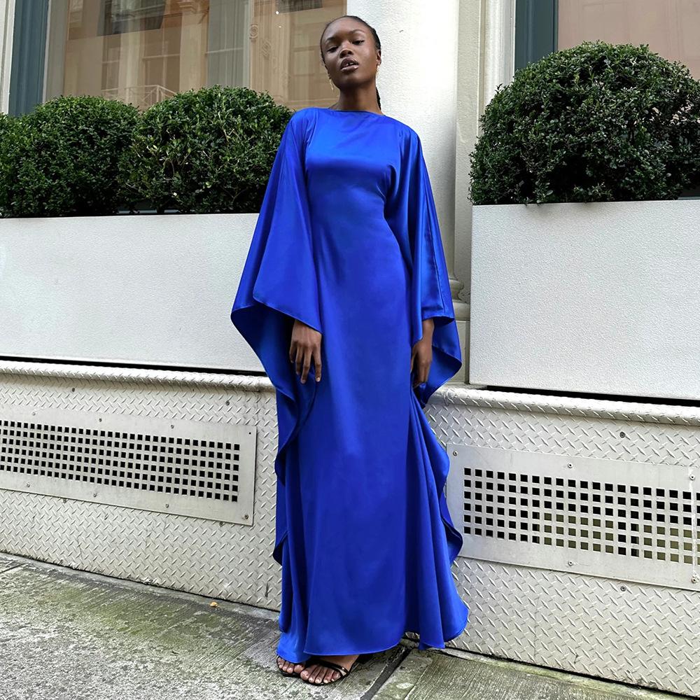 Compre Europeu e Americano Transfronteiriço Novo Vestido Saia Em Torno Do Pescoço Cetim Manga Morcego Vestido Solto Moda Sexy Vestido Longo Primavera E Verão no atacado no Joom.pro