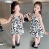 Vestido de meninas verão saia infantil 2024 nova princesa estilo ocidental bebê legal verão sling moderno fofo