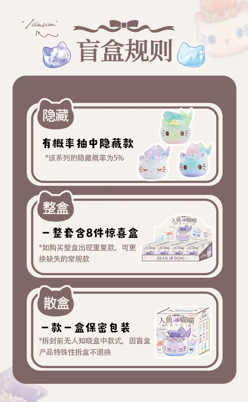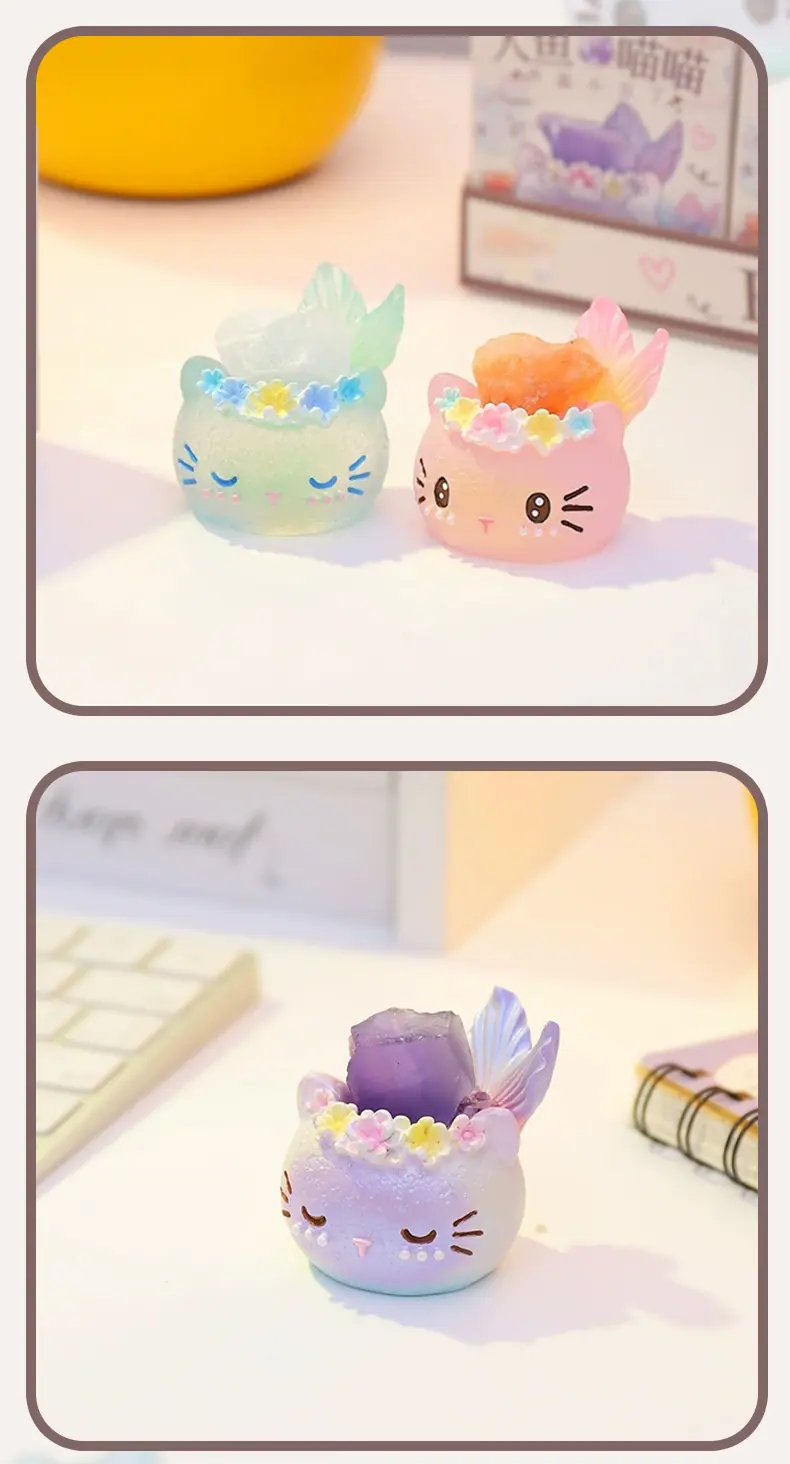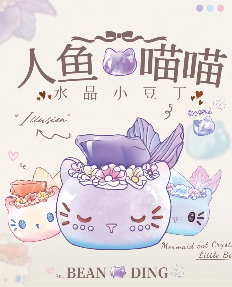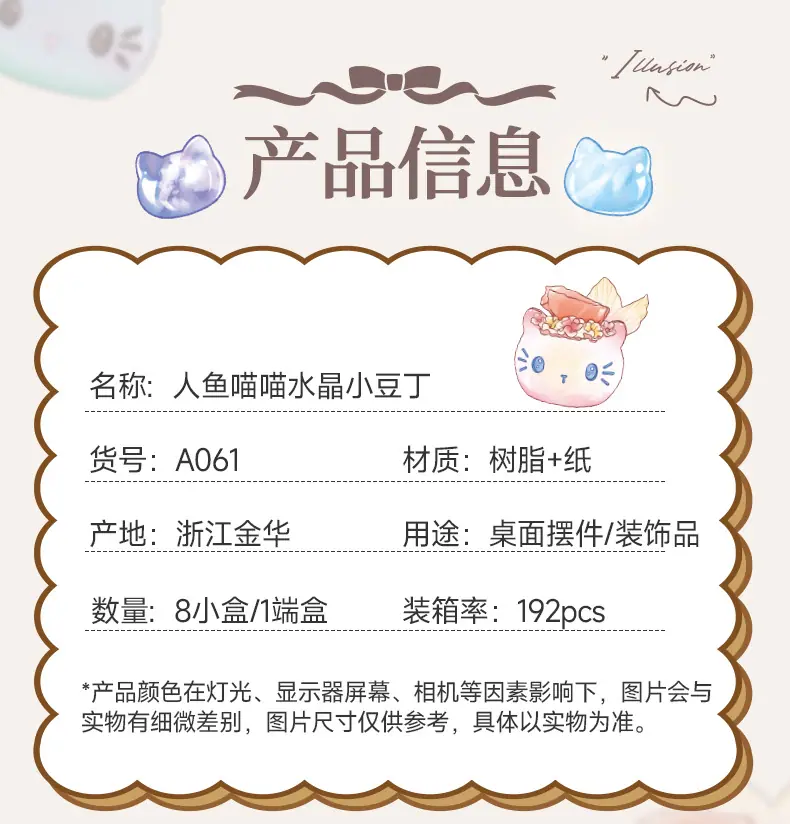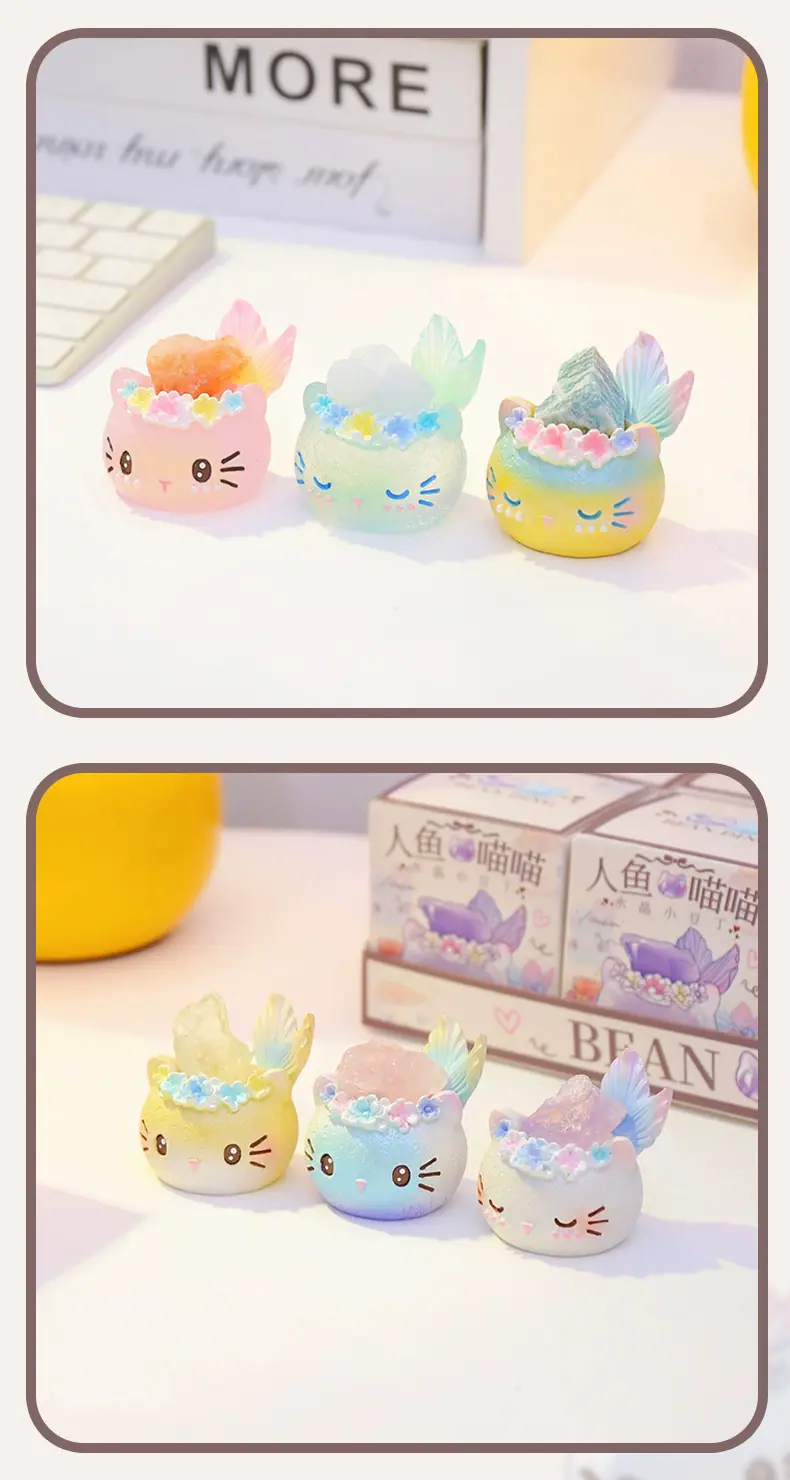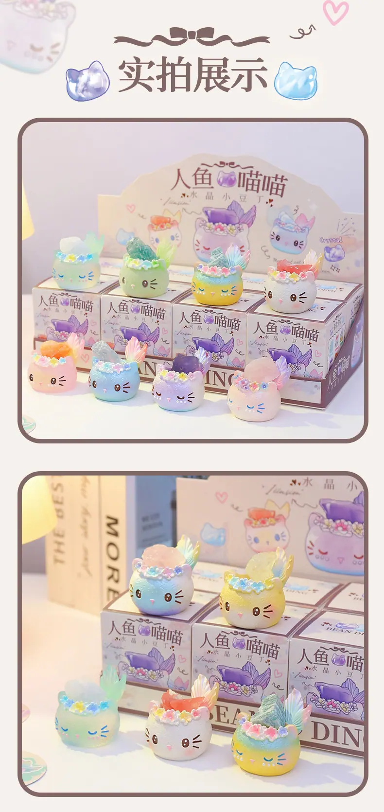 【Nome do Produto】A061 Gato Sereia Cristal Feijãozinho Caixa Cega【Material do produto】Resina