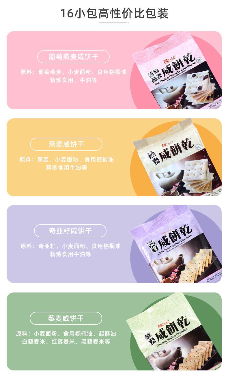 Nombre del producto: Deliciosas galletas saladas de avena y uva importada, bajas en grasa, reemplazo de comida, grano grueso, galletas de soda, leche, sal, snacks salados 400g, 12 paquetes por caja