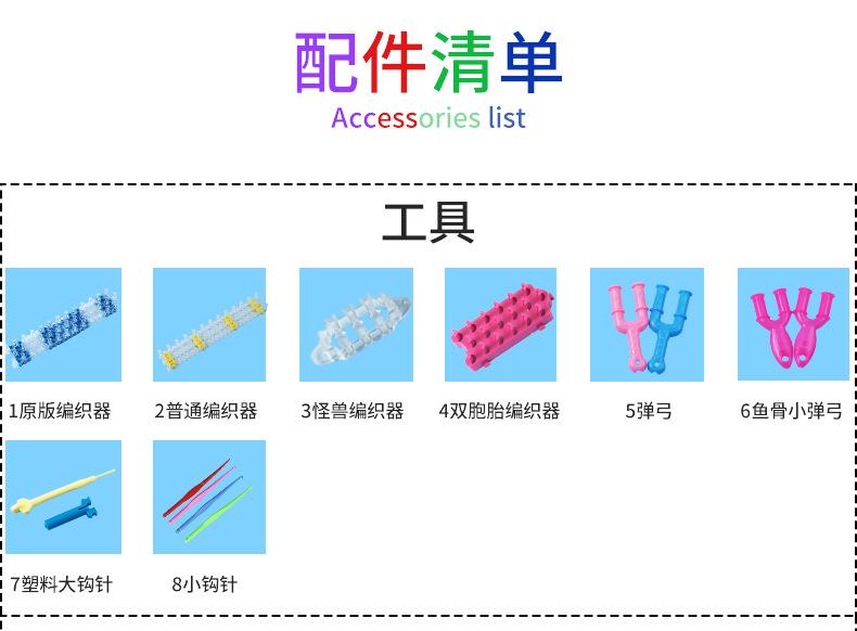 Conteúdo do produto: 300 elásticos de arco-íris + 24 fivelas S + 1 pequena agulha de crochê