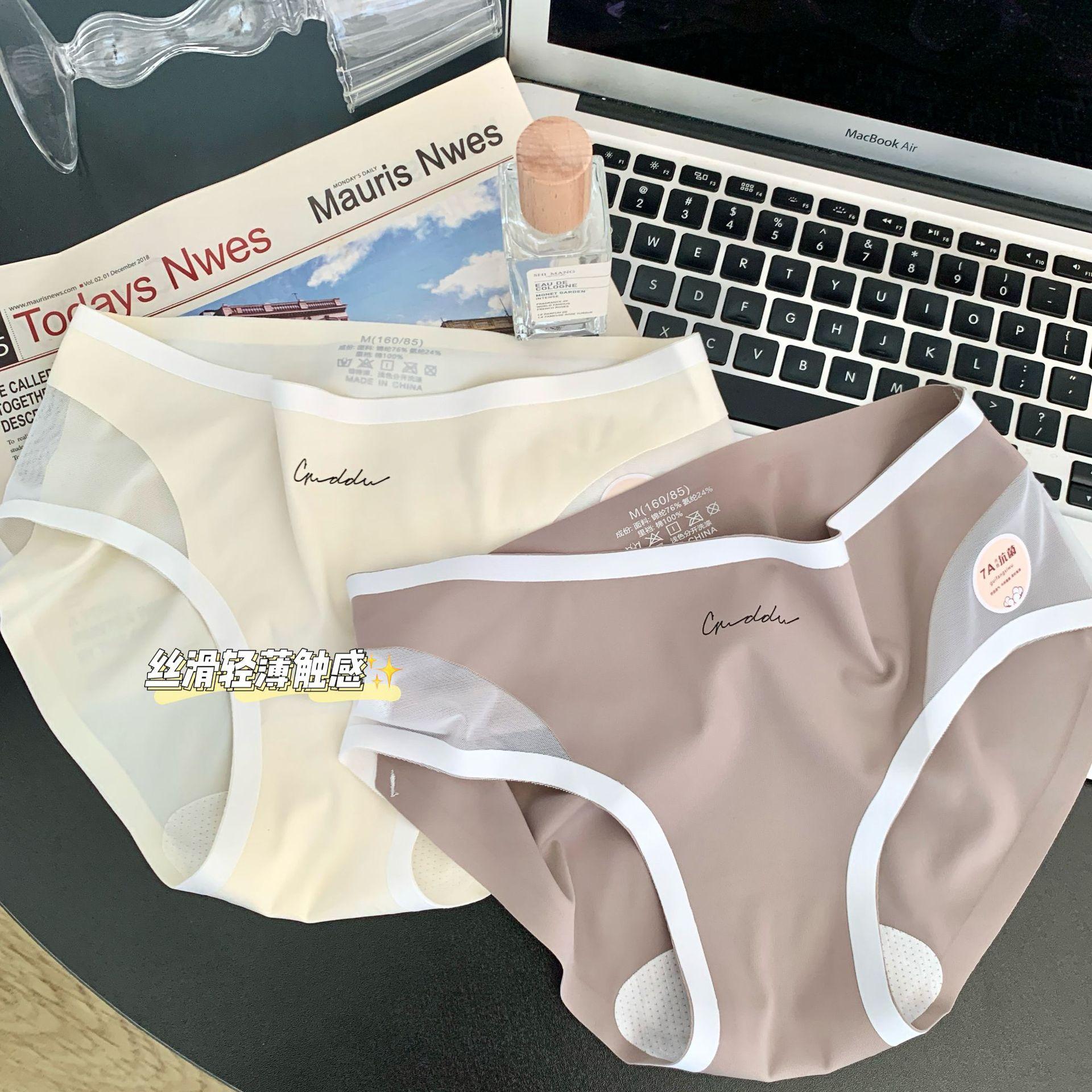 Compre Traceless Ice Silk Cool Girl Underwear Feminino Simples Contraste Malha 7A Antibacteriano Perfil Cintura Média Quadril Cuecas Finas no atacado no Joom.pro