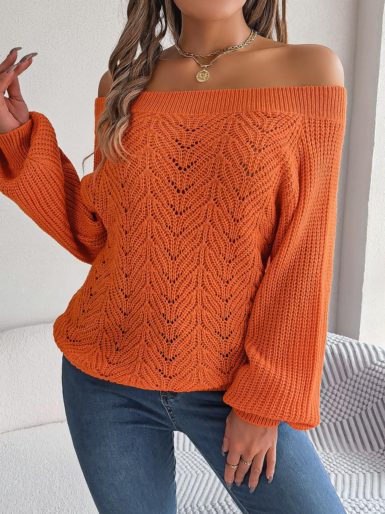 Foto Real de Outono e Inverno 2025 Casual Cor Pura Recorte Gola de Uma Linha Ombro a Ombro Suéter Manga Lanterna Estação Independente Roupa Feminina Cross-Border