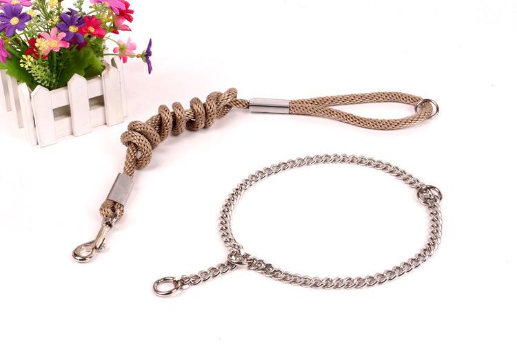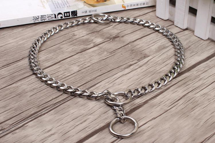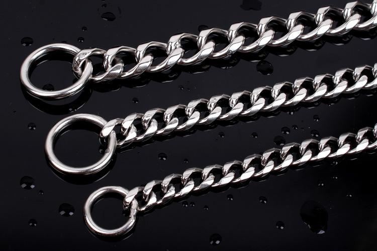 Función: Cadena en forma de P, con un extremo que actúa como collar, que se ajusta cuando el perro corre (no apto para atar perros, solo para pasear). Los collares fijos comunes pueden tirar del dueño cuando el perro corre.