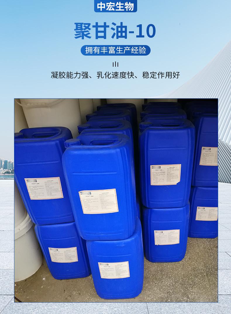 2) Efeito hidratante: É mais eficaz e dura mais que os hidratantes comuns. A principal razão é que a estrutura policíclica de cerca de 10 gliceróis pode reter a água através de ligações de hidrogénio, conseguindo assim um efeito hidratante bom e duradouro.