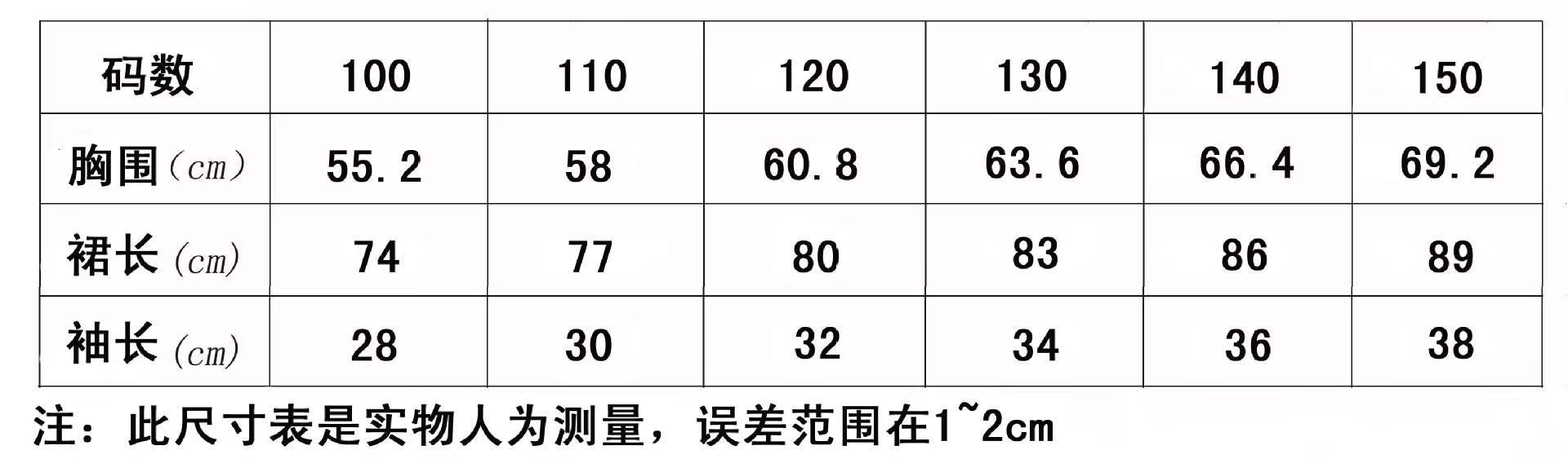 Tamanho: 100-110-120-130-140-150