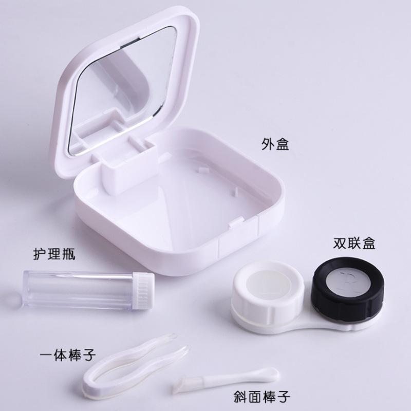 【Equipamento】: Estojo para lentes de contato, espelho, frasco de solução de cuidados para viagem, caixa dupla, clipe de plástico, pequena ventosa.