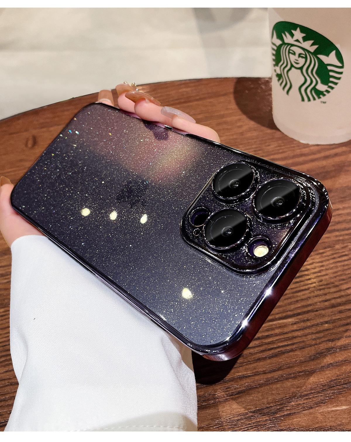 [Nome do produto] Casca rígida de PC transparente galvanizada com glitter de céu estrelado