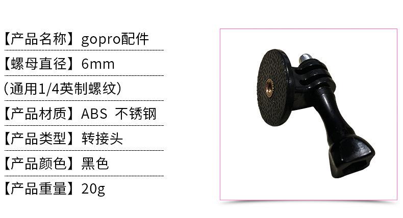 Adaptador Gopro para cabeça de parafuso de câmera padrão 1/4, fixe sua câmera Gopro em um tripé padrão.