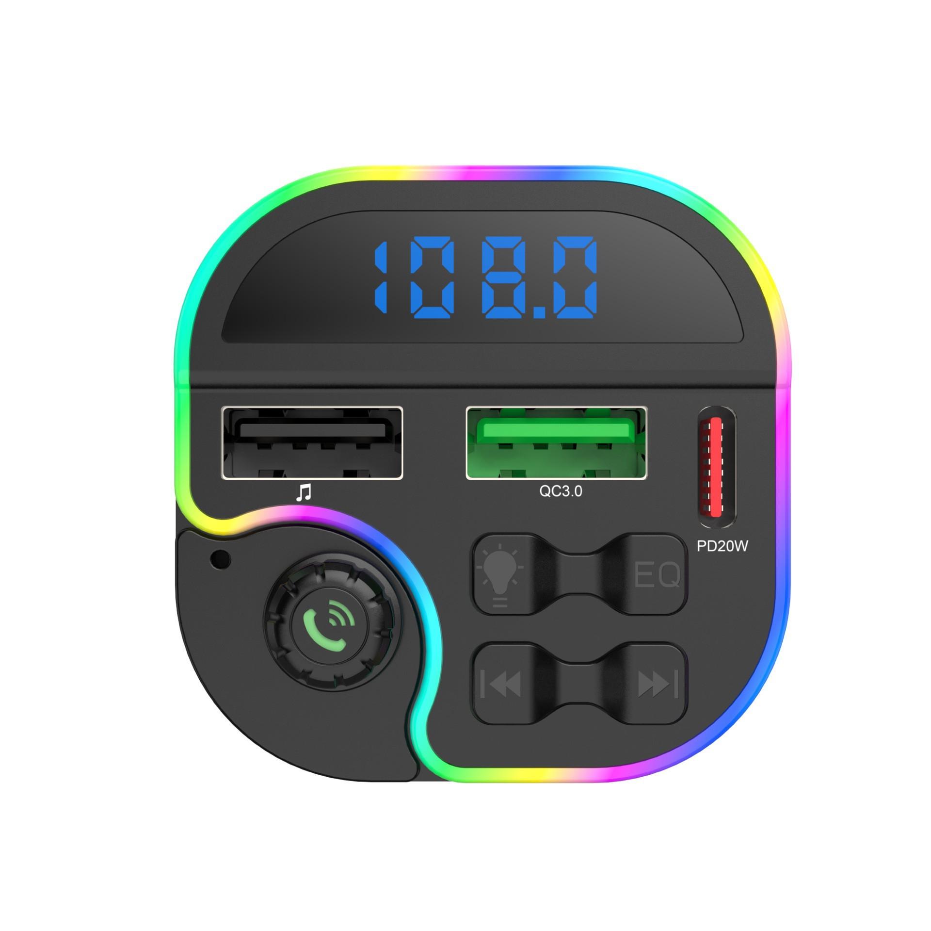 Carro Bluetooth MP3 player Chamadas viva-voz Reprodução de cartão USB Transmissor FM para carro Luzes coloridas de atmosfera