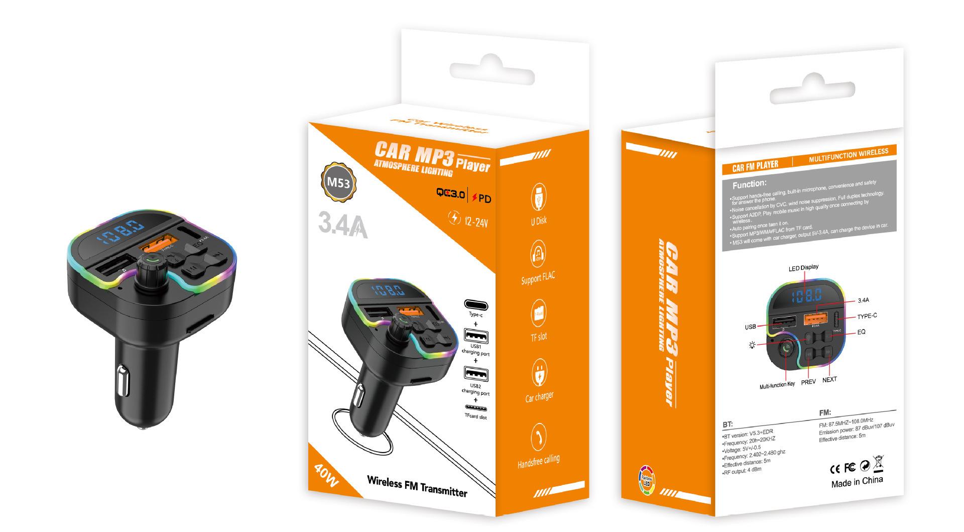 Fabricantes de comércio eletrônico transfronteiriços vendas diretas carro Bluetooth MP3 player viva-voz chamada transmissão de voz PD carregamento rápido USB flash drive