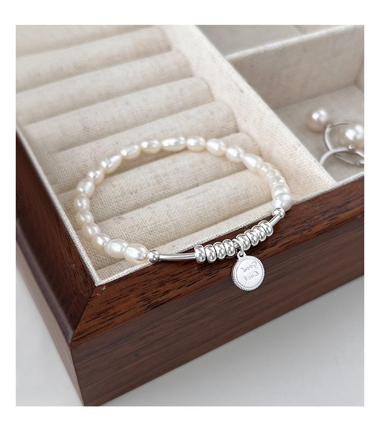 Compre Pulseira de marca redonda da sorte inglesa personalizada de prata esterlina S925 com pérolas de água doce, pulseira vintage feita à mão da marca da sorte, joias no atacado no Joom.pro