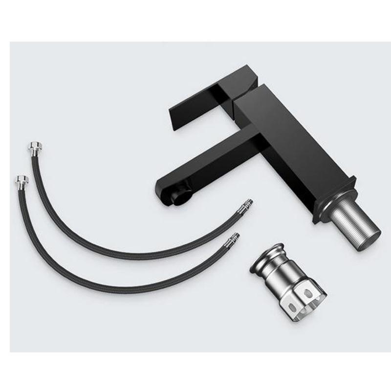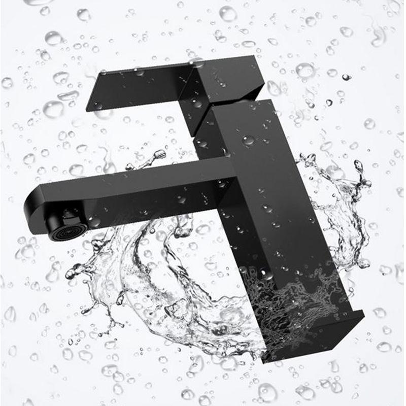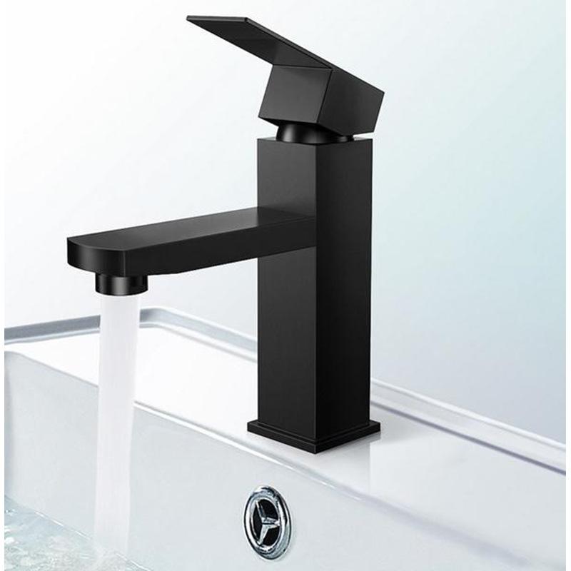 Grifo de acero inoxidable 304 pintado de negro, grifo negro para agua fría y caliente para lavabo