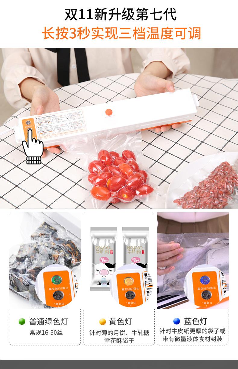 ③ Legumes e frutas frescas têm moléculas ativas que liberam oxigênio e o saco inchará após a aspiração. Este é um fenômeno natural e não tem nada a ver com a máquina e a bolsa. Tenha cuidado ao fotografar. (Solução: A refrigeração pode reduzir a atividade das moléculas, reduzindo assim o inchaço do saco e ampliando o efeito de preservação do vácuo.,O efeito de congelamento é melhor ~)