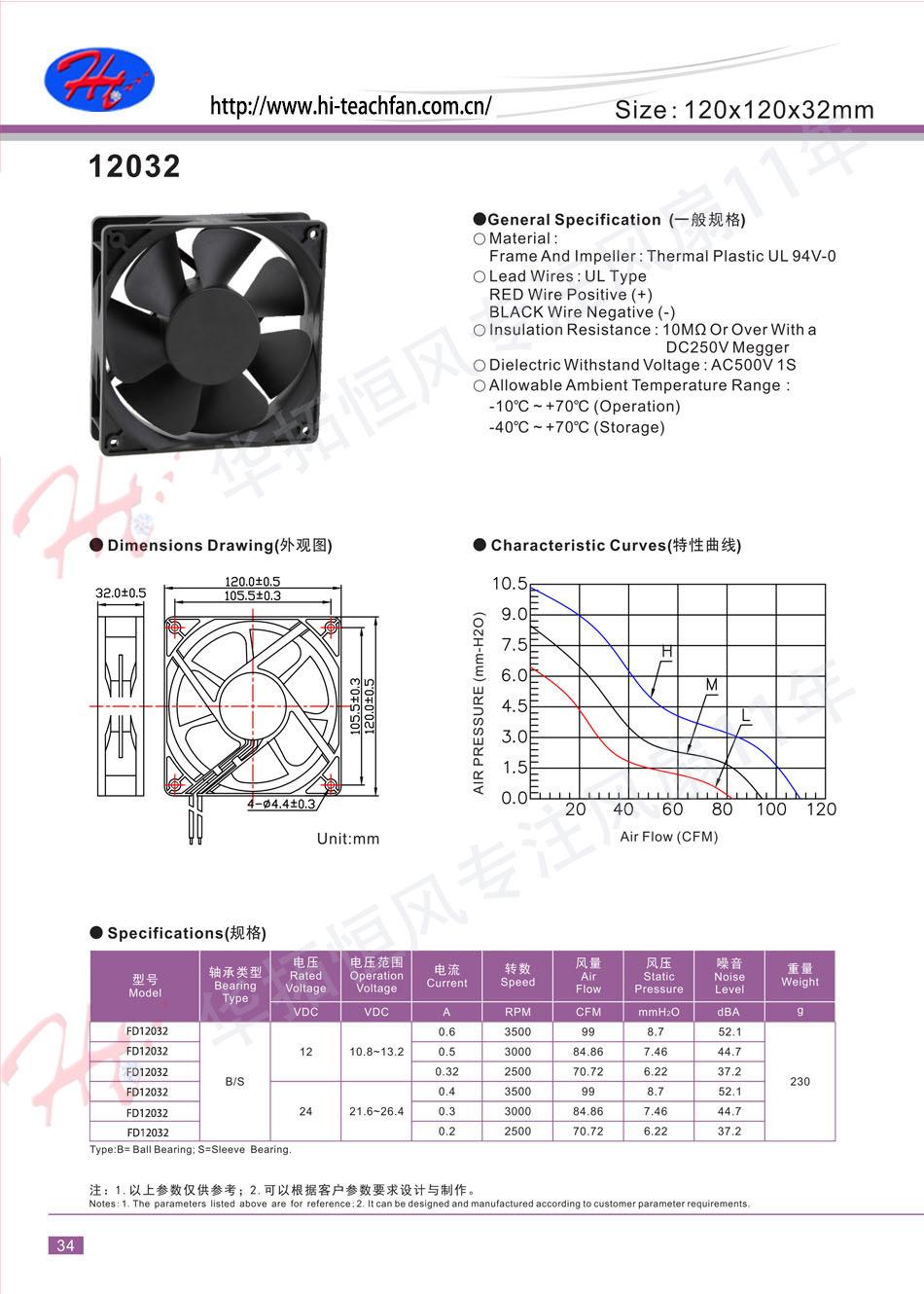 Huahuatuo Hengfeng 12032 ventilador de refrigeração de fluxo axial gabinete de refrigeração vendas diretas da fábrica