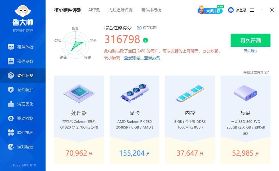 As pontuações dos testes variam dependendo da configuração do suporte de teste. Apenas para referência.
