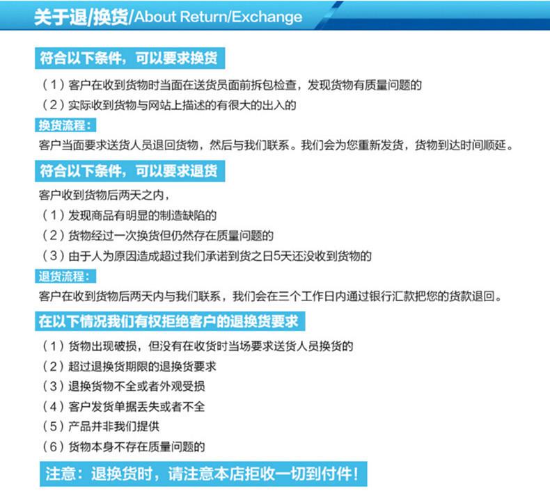 1. Se houver um problema de qualidade com o produto (não causado por danos causados pelo homem), o comprador pode esperar cumulativamente que os produtos ruins se acumulem até um determinado número e então enviá-los de volta para substituição imediatamente. Os produtos substituídos também poderão ser colocados no próximo pedido. Em seguida, envie-o de volta junto com os produtos encomendados.