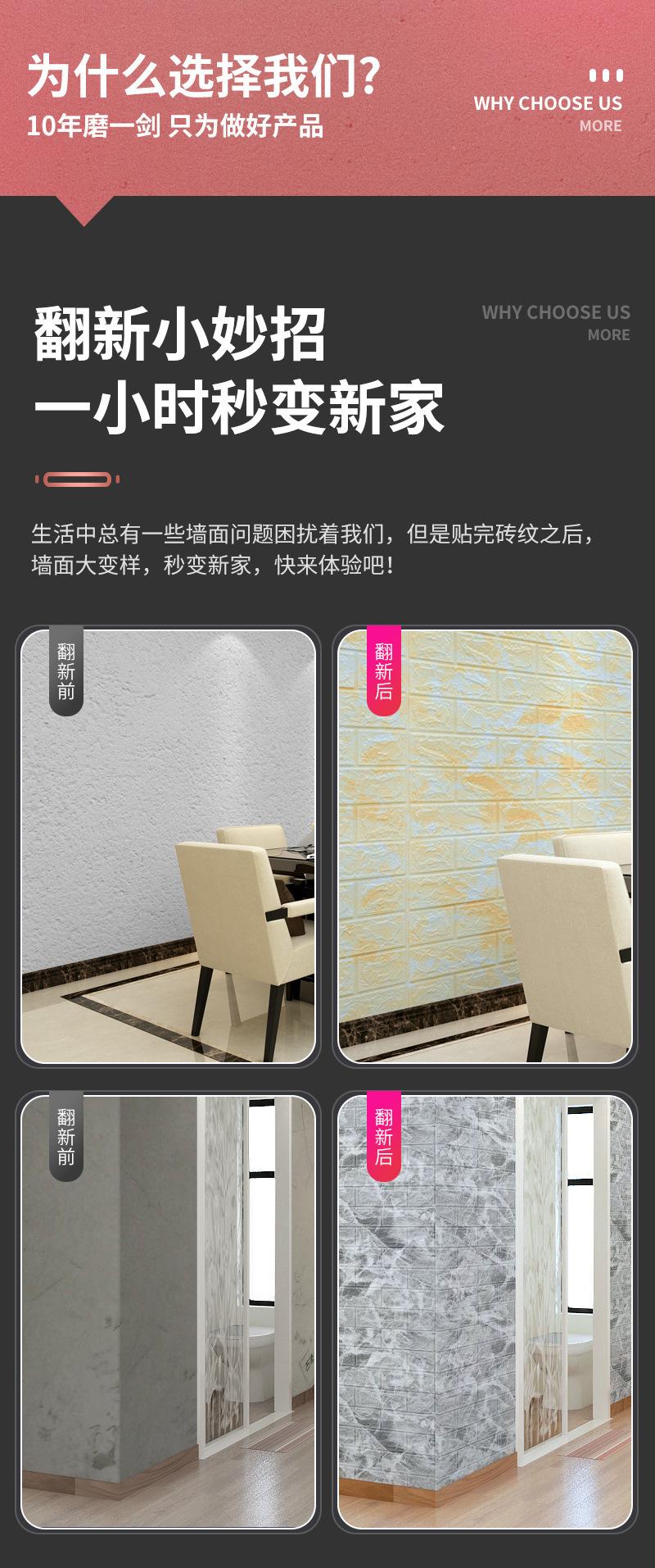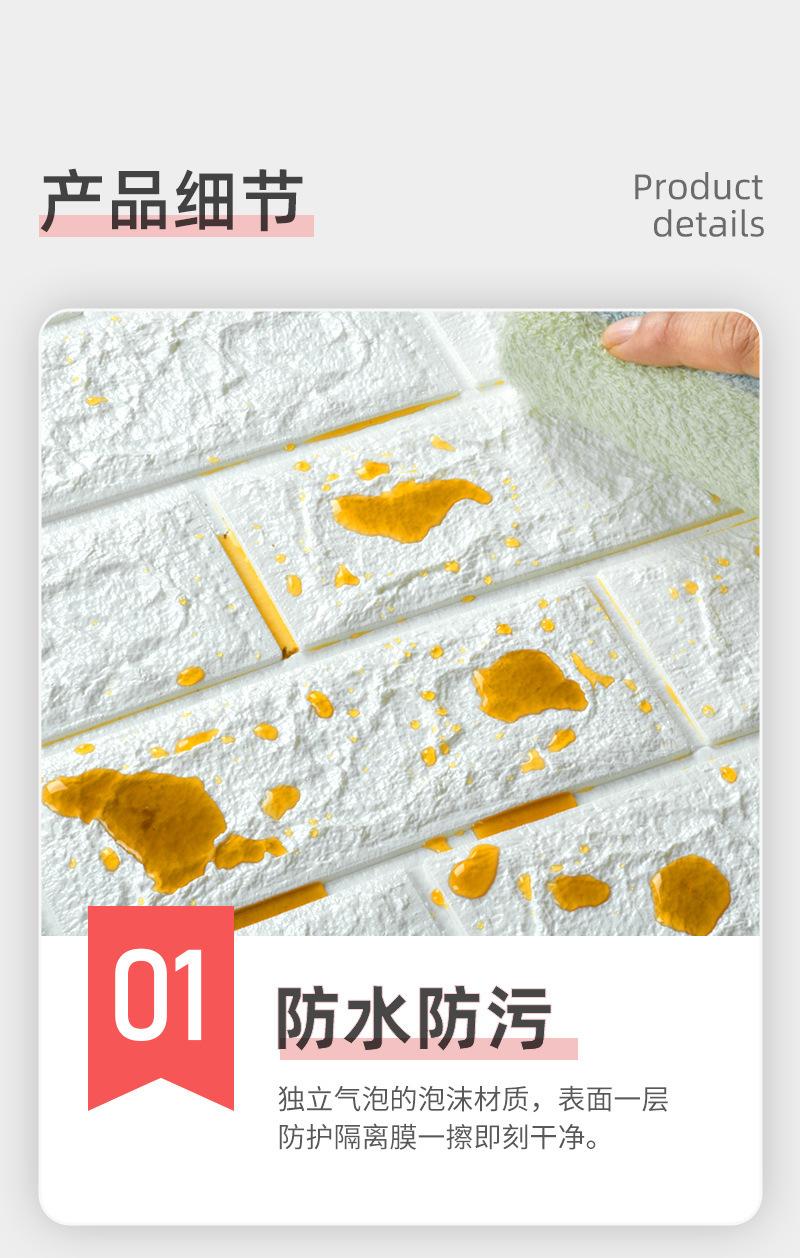 2: La pegatina de pared está hecha de material xpe de paquete suave de espuma de alta densidad, aislamiento acústico, aislamiento térmico, anticolisión, impermeable y el frente se puede frotar.