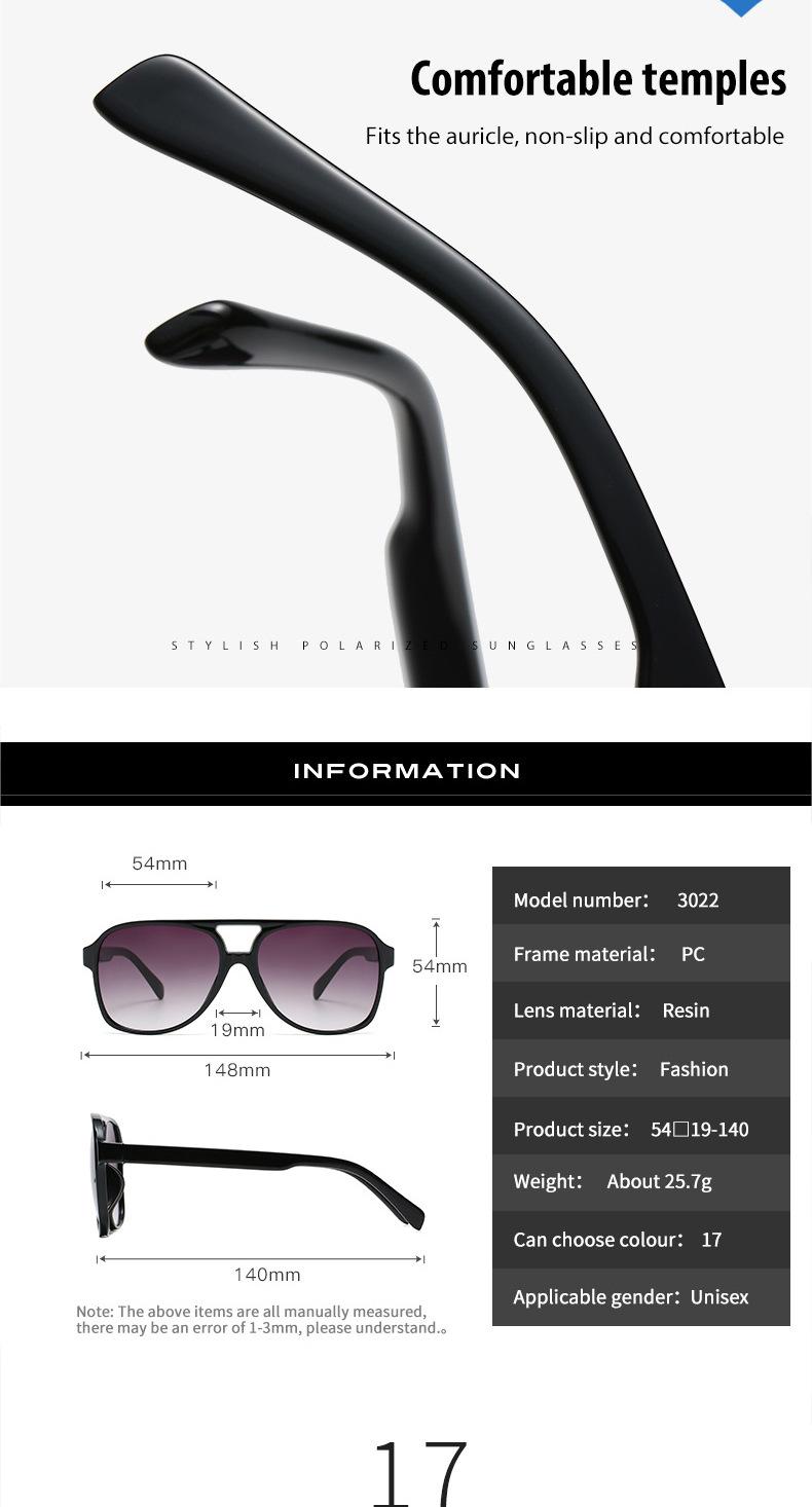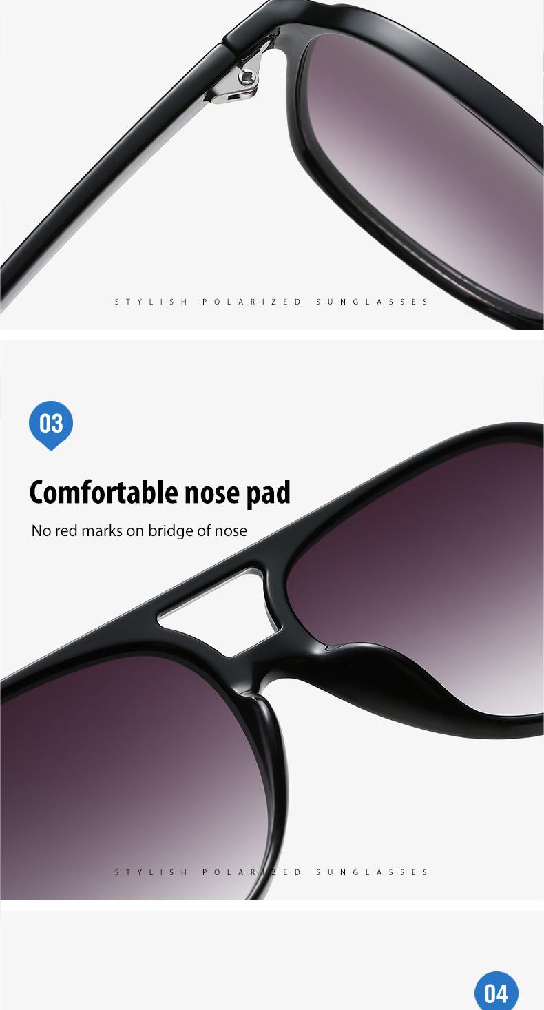 Estas gafas de sol polarizadas utilizan lentes reforzadas y engrosadas. Las ventajas de las lentes reforzadas son su mayor resistencia al desgaste, mayor flexibilidad, mayor resistencia a los impactos, mayor claridad visual y mejor efecto antideslumbrante.