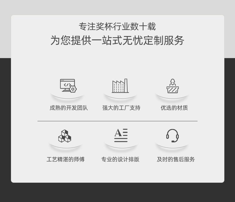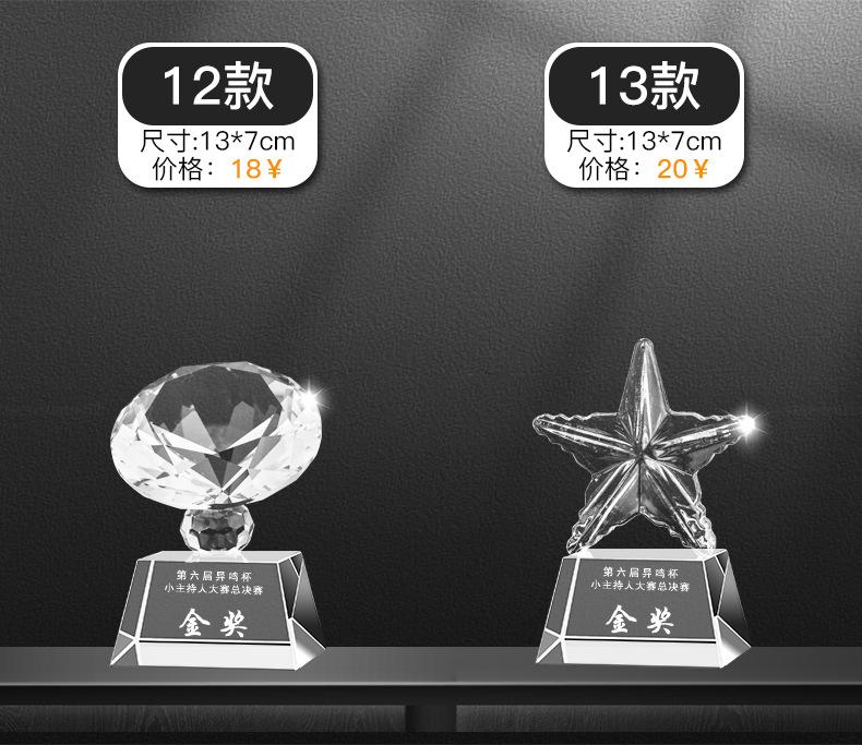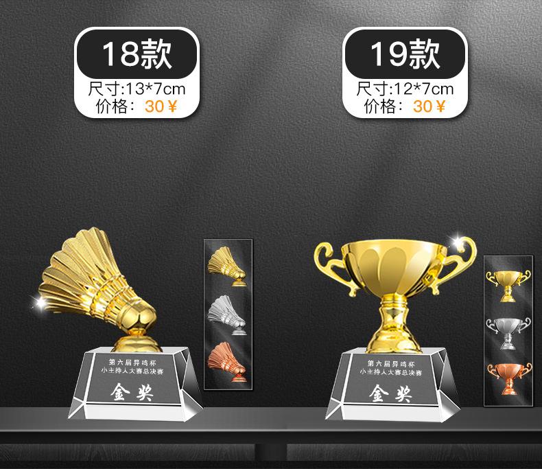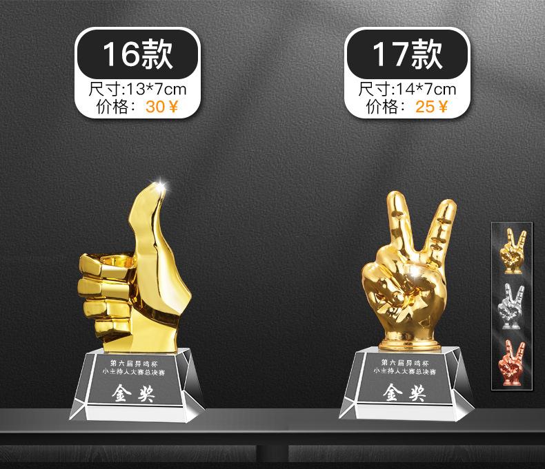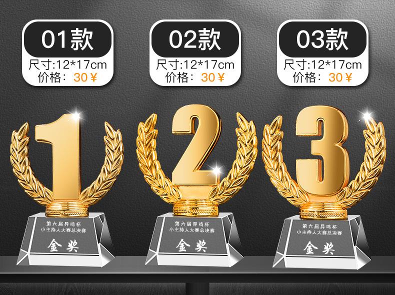 C: 1. Não importa quantos logotipos e palavras da empresa possam ser organizados, nós os gravaremos gratuitamente. A coloração de cada troféu será precificada de acordo com a dificuldade da sua coloração. A cor normal é de 1 a 2 yuans por troféu.