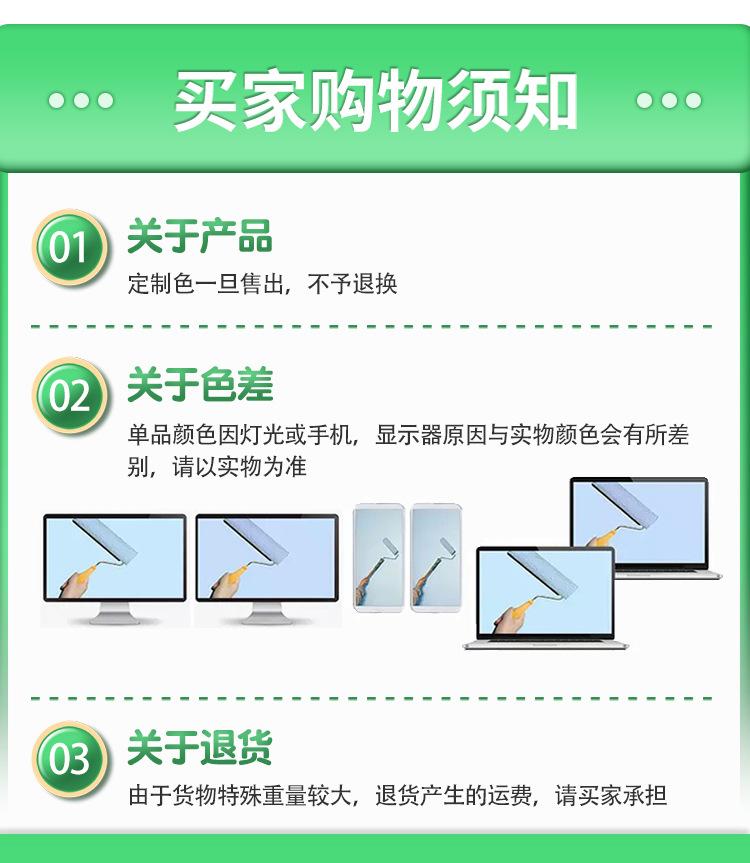 Gravedad específica: 1:1.35; Lavabilidad: El requisito internacional es 1000 veces, la medición real es >5000 veces; Resistencia a las manchas: El requisito internacional es 5 ciclos, la disminución del coeficiente de reflexión es ≤30%, la medición real es 13%; Resistencia al envejecimiento: El requisito internacional es 250 horas, la medición real es 300 horas, la vida teórica es 5 años; Seguridad: cumple con las normas nacionales relevantes de medio ambiente y salud;