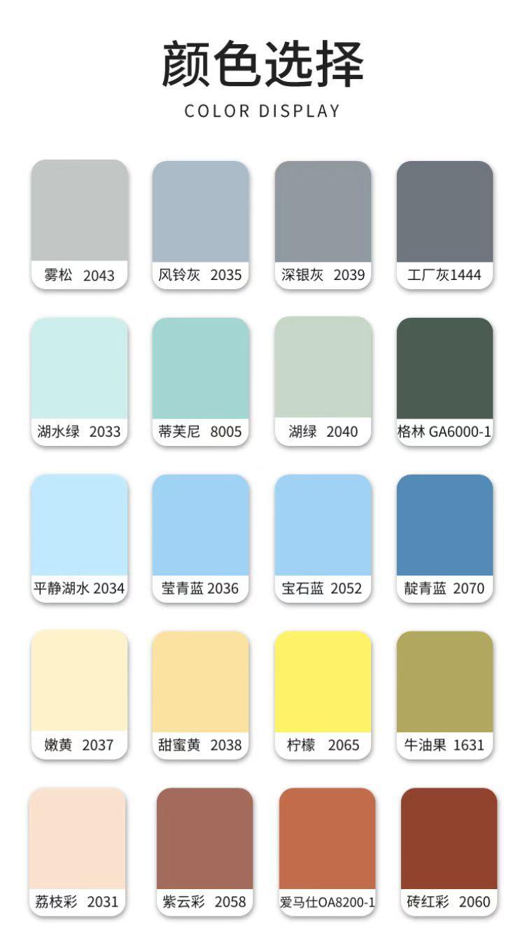 Ventajas del producto: resistencia al envejecimiento, excelente retención del color; buena lavabilidad y resistencia a las manchas; excelentes propiedades impermeables e hidrofóbicas; fuerte adhesión; transpirable; productos no tóxicos, inodoros, verdes y respetuosos con el medio ambiente.