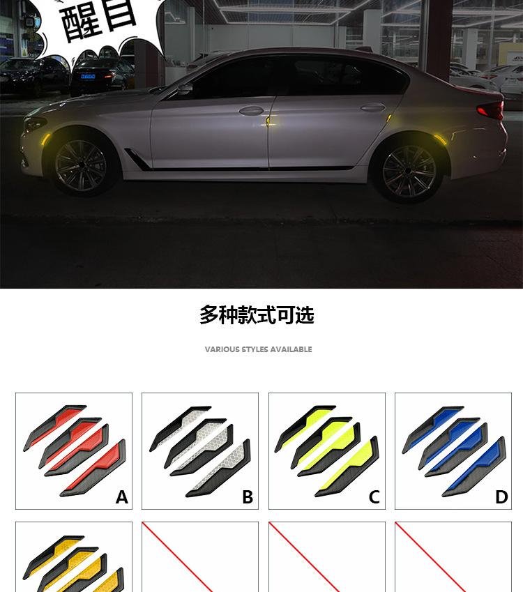 Adesivo anticolisão refletivo de fibra de carbono para porta de carro, adesivo anticolisão e antirrisco de fibra de carbono, aviso de segurança aberto, adesivo decorativo