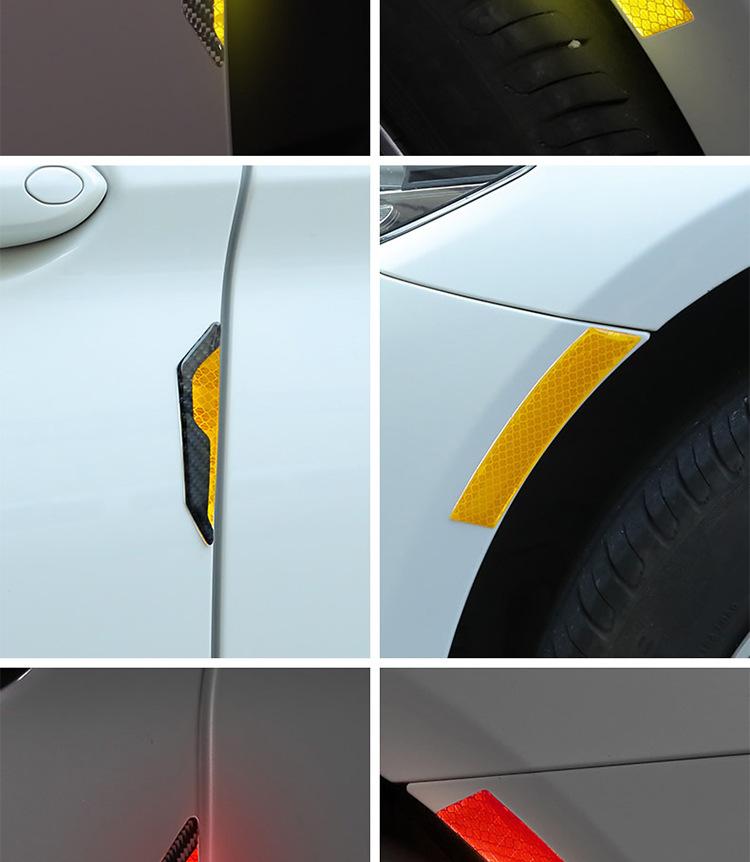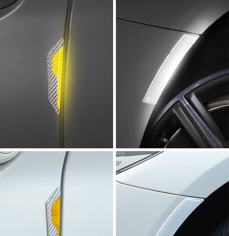 Adesivos refletivos de advertência de segurança com padrão de fibra de carbono, decoração de carroceria, tiras anticolisão