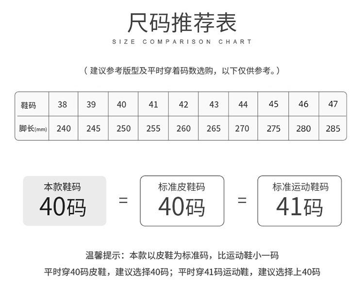 [Sobre o tamanho] Tamanho padrão de calçados de couro, se alguns forem menores ou maiores, entre em contato com o atendimento ao cliente para consulta